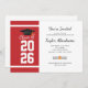 Agregue su año de graduación, nombre y detalles del lugar con fecha a esta moderna invitación de fiesta de graduación con fondo rojo y blanco en negrita y tipografía negra utilizando nuestro botón "Personalizar" arriba