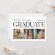 Muestre a su graduado con esta invitación de fiesta de graduación moderna que presenta tres retratos de último año junto a una tipografía "Graduado" en negrita y acentos de escritura elegante. La limpieza del diseño equilibra el tipo impactante con un collage de fotos pulido en la parte frontal, mientras que la parte posterior mantiene los detalles de la fiesta organizados con un diseño minimalista y nítido. Totalmente personalizable en ambos lados.