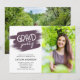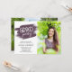 Esta invitación para fiesta de graduación ofrece espacio para 2 fotos, una vertical en la parte delantera y una segunda horizontal en la parte trasera. El diseño está acentuado con pinceladas de pintura morada oscura.