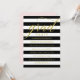Celebra con estilo con esta invitación moderna para fiesta de graduación que presenta “Fiesta de Graduación” en elegante letra dorada sobre rayas negras y blancas en negrita. Personaliza fácilmente el nombre del graduado, escuela, año de graduación y detalles del evento. La parte trasera presenta un patrón de lunares rosa suave coordinado para un acabado divertido y elegante.