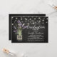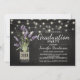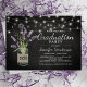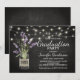 Celebre a su graduado con un estilo campestre chic sin esfuerzo con esta invitación de fiesta de graduación rústica y elegante. Con un fondo de pizarra negra, el diseño está acentuado con luces de cuerda brillantes y un encantador frasco de mason lleno de flores de lavanda púrpura, envuelto en arpillera para un toque cálido inspirado en la casa de campo.