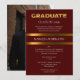 Diseño de fiesta de graduación con foto de "Graduado" elegante y moderno en tonos granate y oro. Simplemente agregue la foto y sus datos. Este diseño se puede modificar fácilmente para graduaciones de universidad, colegio o escuela secundaria. Diseño por Holiday Hearts Designs (derechos reservados).