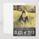 Esta es una simple invitación para graduarse diseñada para tu estudiante graduado. Sube tu foto grande para la mitad superior, y posiciona y cambia el tamaño según sea necesario para llenar, luego personalizar las tres áreas de texto simples en la parte inferior, un poco angustiada, con el nombre completo de tu graduado, año de graduación y centro de educación secundaria o post secundaria.