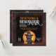 Invitación a una reunión antes de que comience el truco o el tratamiento. Genial para los niños, esta invitación es más tierna que espeluznante. ¡Un gatito negro que está listo para lanzar un hechizo de cortesía sobre ti! Vestido en el gorra de una bruja grande y sobredimensionada, este amigo felino está listo para una fascinante aventura de Halloween. Con dos alegres lámparas jack-o' sentadas a sus pies, y una gran luna naranja que se levanta detrás, este diseño captura el encantador espíritu de Halloween.