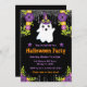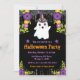 Cute Ghost Floral Halloween diseño con fondo de polka negro y purpurina de goteo negro