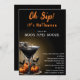Oh Sip Black Martini Calaveras Invitación divertida para fiesta de Halloween - Con una bebida negra en una copa de martini adornada con calaveras y calabazas naranjas y murciélagos negros vuelan alrededor en un fondo negro con iluminación trasera. Perfecto para disfraces de Halloween y cócteles invitan o fiesta de cócteles de fantasmas y licor. Personalice esta plantilla editable de invitación de fiesta de Halloween con los detalles de su evento. Todo el texto es editable. Disponible como descarga digital instantánea, perfecto para enviar por mensaje de texto, correo electrónico o redes sociales.