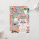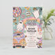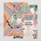 Invitación de la fiesta de Halloween de los Vibes de fantasía retro - ¡Vamos Groovy! El diseño presenta un fondo colorido con un arcoiris boho. ilustraciones retro de Guay decoran el sencillo patrón con adorables fantasmas hippies, flores de cráneo, espeluznante bola de disco y dulces espantaculares.