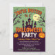 ¡Acepten la nostalgia del pasado de Halloween con esta invitación retro inspirada por la fiesta de Halloween! Esta invitación rebosa de encanto vintage, con un estilo de tira cómica clásico en una casa embrujada contra un caprichoso cielo verde aguado. El audaz tipo de letra retro en un vibrante naranja y blanco exclama, "¡Estás invitado a una fiesta de Halloween!" flanqueado por dos alegres lámparas. Debajo de esta encantadora escena, incluya sin esfuerzo los detalles de su evento. La parte trasera de la invitación continúa con el tema vintage con un intrincado diseño de telaraña, ambientado en el mismo encantador matiz verde, creando un entorno inolvidable. ¡Ideal para una velada llena de diversión!