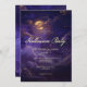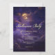 Anuncie a su fiesta bajo el resplandor de una noche mágica. Nuestra encantadora invitación a la fiesta de Halloween incluye un cautivador cielo oscuro, pintado en moradas profundas y moradas. Las nubes brillantes brillan con un toque de oro falso, capturando la luz suave de una luna llena magnífica. La escena etérea prepara el escenario para tu noche, invitando a tus invitados a celebrar bajo la atenta mirada de la luna. Los detalles de su fiesta se muestran en fuentes vintage, asegurando que se destaquen de manera excelente en el contexto dramático. Creado por Simply Farmhouse Press.