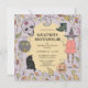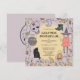 ¡Brujas, gatos negros y calderos, oh Dios! Una linda invitación para una fiesta infantil de Halloween con brujas y objetos de brujas para practicar brujería. Las hojas del otoño fluyen por la escena.