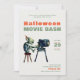 Una divertida pero elegante invitación a la fiesta de Halloween con el tema de la noche de películas, con un globo que opera un proyector de películas, en acuarela. Elegante, moderno, sencillo y divertido, gustará a los aficionados a las noches de cine y a la diversión de Halloween.