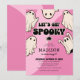¡Desata la diversión con nuestras nuevas invitaciones de cumpleaños de Halloween para niños! Diseñadas con un adorable fondo rosa, fantasmas retro divertidos y la línea juguetona 'Vamos a asustarnos'. La plantilla de texto moderno es fácil de personalizar. ¡Mira cómo crece la emoción de tus invitados mientras no pueden esperar para tenerlas en sus manos!