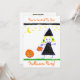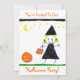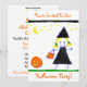 ¡Fiesta de Halloween para niños! Invitaciones a la fiesta de Personalizable de Halloween. Añade tus propios detalles en minutos al frente y al fondo de esta invitación de Halloween. Dibujo de una niña pequeña vestida de bruja con su bolso de truco o de regalo. Luna y estrellas están en el cielo y hay una calabaza tallada a su lado. Cada invitación incluye un sobre. ¡Genial para una fiesta de Halloween infantil!