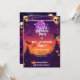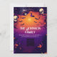 Celebra Halloween con estilo con esta invitación de fiesta personalizado que incluye calaveras espeluznantes, murciélagos y una brillante luna morada. Perfecto para una celebración familiar de Halloween o para un evento hogareño, esta tarjeta establece el ambiente para una noche de trucos, dulces y espeluznante diversión.