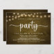 Anuncia y comparte tu felicidad para siempre con estilo con nuestra tarjeta de invitación de celebración de boda con diseño de tema de madera oscura rústica y cuerdas modernas (Fiesta de felices para siempre). Es ideal para parejas que han decidido celebrar su mejor día. Con su diseño sofisticado y juguetón, esta invitación seguramente establecerá el tono para un evento inolvidable. La tarjeta de invitación presenta un tema de diseño de letra moderna y minimalista, agregando un toque de elegancia atemporal a tu celebración. Diseñado por TeeshaDerrick