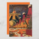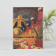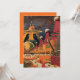Fácil de personalizar invitación a la fiesta de inauguración, ¡solo agrega tu información! Ilustración vintage de viaje y transporte con imagen de ciencia ficción con un entorno urbano retro de cómic clásico con una ciudad del futuro. Los edificios arquitectónicos tienen forma de conos y los vehículos vuelan en el cielo como pájaros mientras multitudes de personas se mueven por la metrópolis.