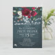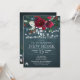 Elegante y chic plantilla de invitación de inauguración de casa de invierno en una pizarra de color azul marino oscuro de medianoche con un hermoso ramo de rosas peonías rojas burdeos y blancas con follaje verde oscuro, hilos de luces brillantes blancas y un texto con caligrafía manuscrita. ++++++++++++++ Fácil de personalizar con tus detalles! +++++++++++++++ La invitación es adecuada para celebraciones elegantes de invierno en un entorno rústico campestre / granja / cabaña / Navidad en una nueva casa.