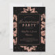 Diseño de invitación a fiesta de inauguración elegante y moderno con motivo de copo de nieve con brillo rosa dorado, nombres y fecha personalizados y texto adicional. ¡Ideal para fiestas navideñas y de Navidad! Fácil de usar y personalizar.
