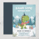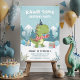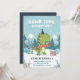 Celebra el gran día de tu pequeño con esta adorable invitación de cumpleaños de dinosaurio de invierno RAWR-some! Con un simpático T-Rex verde con sombrero de fiesta y bufanda, rodeado de montañas nevadas, pinos, globos y regalos, esta invitación es perfecta para una fiesta de cumpleaños invernal acogedora. Fácil de personalizar con el nombre de tu hijo, edad, detalles de la fiesta y información de RSVP.