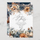 Invite a sus invitados a una elegante fiesta de jardín con esta impresionante invitación que presenta flores azules marino, naranja quemado y champán. El sofisticado diseño de acuarela es perfecto para cumpleaños, despedidas de soltera o cualquier celebración al aire libre refinada. Totalmente personalizable para adaptarse a los detalles de su evento, esta invitación establece el tono para una reunión inolvidable.
