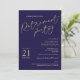 Crea un fiesta de despedida de un miembro del personal personalizado con este elegante diseño de invitación de la marina y del Partido de la Jubilación de oro. Este elegante efecto de falso oro y la invitación a la celebración de la jubilación de fondo azul oscuro presenta un diseño moderno con una fina fuente de escritura y espacio para los detalles del evento y el logotipo (opcional). Puede editar el fondo marino a cualquier color que desee y hacer invitaciones clásicas a la cena de retiro de negocios.