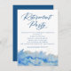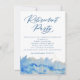 Invite a sus huéspedes a una celebración de retiro con esta tarjeta plana de personalizable. Este diseño elegante y elegante es una acuarela pintada a mano en tonos azul claro, azul clásico y azul marino complementada con toques de oro (Relieve metalizado simulado). El diseño abstracto y limpio es perfecto para un hombre o una mujer que esté listo para celebrar el siguiente capítulo de la vida. El texto está en azul clásico y se puede personalizar para su celebración.