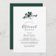 Esta invitación a una fiesta de retiro de esmeralda verde es perfecta para un evento de boho. El diseño es elegante y rústico, con unas hojas de acuarela verde oscuro y un eucalipto con un toque bohemio moderno.