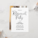 Esta elegante invitación de fiesta de jubilación con guión en blanco y negro puede ser personalizada con toda la información de su celebración especial y foto en el reverso. Diseñada por Thisisnotme©