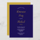Invitación del Partido de Jubilación Navy Blue And Gold Script Con un elegante nombre de guión de firma dorada y tipografía en un fondo azul marino de moda, esta elegante invitación de fiesta de retiro puede ser personalizada con su información especial del evento.