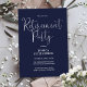 Esta invitación de fiesta de jubilación con guión elegante azul marino puede ser personalizada con toda la información de su celebración especial. Diseñada por Thisisnotme©
