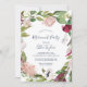Esta invitación a la fiesta de retiro de la brisa tropical es perfecta para un elegante evento de primavera o verano. El diseño floral está decorado con flores rojas, burdeos, rosas y blancas en una corona de vegetación tropical de acuarela con un ambiente hawaiano relajado.