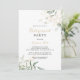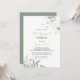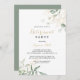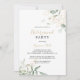 La invitación a la fiesta de retiro de este follaje dorado verde es perfecta para un evento rústico. Este diseño artístico presenta acuarelas de color oro y follaje verde de inspiración natural.