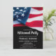 Invitaciones de Jubilación de la Policía con Bandera Americana - Celebre años de servicio dedicado, e invite a amigos y familiares a su fiesta de jubilación de la policía con esta Invitación de Jubilación de la Policía con Bandera Americana - diseño de bandera americana de EE. UU. en negro. Esta invitación de jubilación de oficial de policía también es perfecta para invitaciones de graduación de la academia de policía, invitación de jubilación militar, cambiar lugar en personalización. Vea nuestra colección para regalos de jubilación de policía coincidentes, regalos de graduación de policía, favores de fiesta y suministros. DERECHOS DE AUTOR © 2021 Judy Burrows, Black Dog Art - Todos los derechos reservados. Invitación Patriótica de Fiesta de Jubilación de la Policía con Bandera Americana