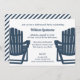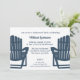 Sillas de playa de Adirondack azul marino en un texto de estilo moderno, invitación a fiesta de retiro.