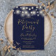 Con luces de cuerda, esta elegante invitación a la fiesta de retiro en color azul marino y oro se puede personalizar con su información especial de eventos. Diseñado por Thisisnotme©