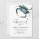 La invitación perfecta para una fiesta de retiro para una memorable celebración a lo largo de la costa, este diseño presenta un cangrejo azul en la esquina superior con vibrantes acuarelas. La combinación de textos de invitación es moderna con una elegancia informal que es a la vez de buen gusto y hospitalaria. Personalice la plantilla de texto con sus detalles específicos. Esta invitación es una elección maravillosa para las celebraciones de retiro en las zonas costeras, o cenas donde se sirve marisco.