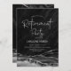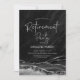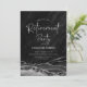 Invitación a la fiesta de retiro del ágata de plata negra. Elegante diseño moderno con fondo geodésico de mármol agate acuarela, letra falsa purpurina plateada y tipografía. Tarjeta de invitación de moda perfecta para una elegante celebración de retiro de mujeres. Invitaciones Zazzle impresas o una plantilla imprimible digital de descarga instantánea.
