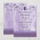 La parte superior de la tarjeta está decorada con un elegante patrón plateado y púrpura que crea líneas complejas con un corazón en el centro. En la parte posterior de la tarjeta, puede agregar un mensaje relacionado con direcciones, código de vestimenta, etc.