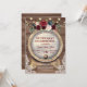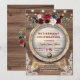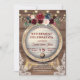 Diseño romántico y trendy que presenta flores de color burdeos en acuarela, esquinas de encaje rústico vintage, barril de vino y luces de cuerda; en la parte posterior iniciales y ramo floral, todo sobre fondo de granero antiguo. Utilice la herramienta Personalizar para agregar su información. Para artículos coincidentes, visite mi Colección de Fiestas de Jubilación.