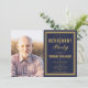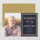 Una invitación elegante de color azul marino y dorado para una fiesta de jubilación puede ser personalizada con tu foto especial y la información del evento. Diseñado por Thisisnotme©