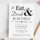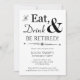 Va a ser una fiesta de jubilación increíble, así que prepare el escenario con esta divertida invitación retro en negro y blanco Comer, Beber & Retirarse.