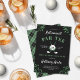 Invitación a una fiesta de retiro con temática de golf en negro y verde, con vegetación, y una pelota de golf y clubes de golf cruzados.