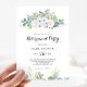 Esta invitación a la fiesta de retiro de eucalipto tropical es perfecta para una simple celebración de retiro. El diseño está decorado con rosas deslumbrantes morados, blancos, azules y rosas, escondidos en un bonito ramo de hojas verdes eucaliptus.