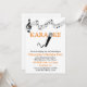 Este divertido diseño de karaoke con micrófono y arte de escala musical está listo para personalizar. El color del texto cambia en naranja y negro. Complete el texto de la plantilla para su fiesta, elimine el texto o edite usando la herramienta de diseño para seleccionar un estilo de fuente, tamaño y color que le guste.