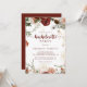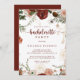 Esta encantadora y rústica y dorada invitación a la soltera floral es perfecta para un simple evento. El diseño se compone de marsala pintada a mano, flores rosas, rubias, borgoñas y doradas con hojas verdes dispuestas en hermosas coronas.