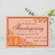 Calabaza de estilo rústico y deja la invitación del día de Acción de Gracias.