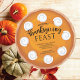 Invitación a la cena de Acción de Gracias Die Cut que incluye un pastel de calabaza redondo con crema batida adornado con una tipografía moderna y fresca con letras a mano