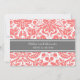 Cenas de Personalizado en moda rosa, gris y blanco, naranja de melocotón moderno y elegante, y decoración clásica de antaño con damasco floral. Personalice el texto para crear una invitación única para su cena de ensayo boda. Póngase en contacto con nosotros para solicitar un cambio de color. Disponible en muchos productos bodas a juego.