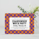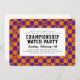 Celebra el mayor partido de la temporada con esta moderna invitación al fútbol y al tablero de ajedrez y reúne a amigos para un fiesta de vigilancia del partido de campeonato. Fácil de editar cuadros de texto y un práctico código QR escaneado en la parte trasera envía invitados a tu sitio web de RSVP en línea o organización de potluck. Esta invitación está lista para el equipo con colores naranja y púrpura o puede cambiarlos usando el botón de edición y seleccionando la capa de patrones > desagrupar > y seleccionar cada mosaico de patrones individualmente y el fondo para que se adapte a los colores de su equipo preferido.