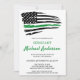 Invitaciones de retiro militar de la delgada línea verde o invitaciones de fiesta de despedida militar. Estas invitaciones de fiesta del ejército de la delgada línea verde son perfectas para una jubilación militar, despedida de despliegues militares, celebración de bienvenida militar, graduación militar y fiesta de despedida de soldados. La bandera de la delgada línea verde representa a todos los militares, ejército, protección fronteriza, patrulla fronteriza, oficial de conservación, guardabosques, guardia de caza,执法 federal. Personalice esta invitación de bandera militar con el evento de su soldado, nombre y detalles de la fiesta.